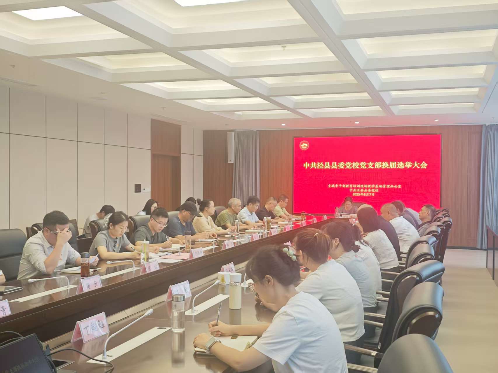 为全面加强党组织建设,充分发挥战斗堡垒作用,8月7日下午,市干教基地办(泾县县委党校)党支部召开党员大会,进行换届选举,室(校)全体党员参会。