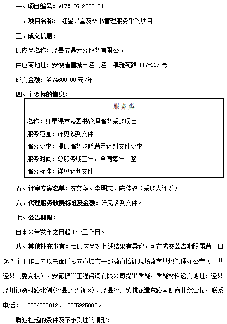 红星课堂及图书管理服务采购项目成交结果公告